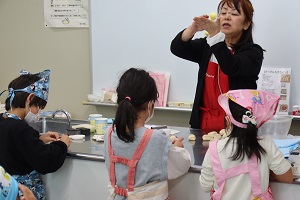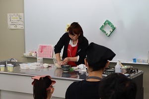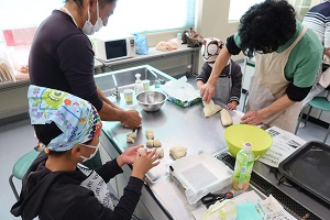 内容:講師の指導により、親子でちぎりパン作り・牛乳パックによる型作りを実施。