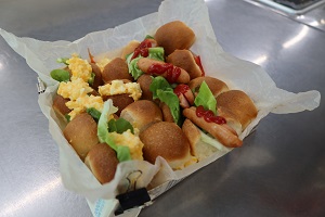 牛乳パックでの型作りやパンに挟む具材作りもし、出来上がったちぎりパンはその場でおいしく食べたり、持ち帰ったりしました。