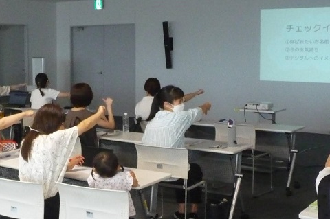 次に、デジタルが得意か不得意かをハンドサインで表していただいたところ、複数の方が「不得意」または「どちらでもない」と答えられていましたが、スマホやタブレットを使っているかとの質問には、全員がうなずかれていました。講師からは「スマホやタブレットをお使いということは、すでに皆さんデジタルを活用できていますよ!」とお声かけし、ツールへの親しみを感じていただけたようなご様子でした。