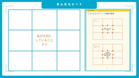 3つ目のワークは、「まんだらチャート」を使って自身が大切にしていることを可視化するものです。8つのマスに「自分が大切にしていること」を書き出し、その一つひとつに「その価値観を持つようになった原体験」を紐づけました。