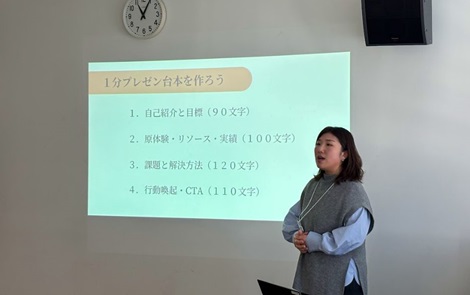短時間の反復実践を通じて、受講生は自分の言葉を磨き、伝えたい想いをより明確にしていくプロセスを体験しました。