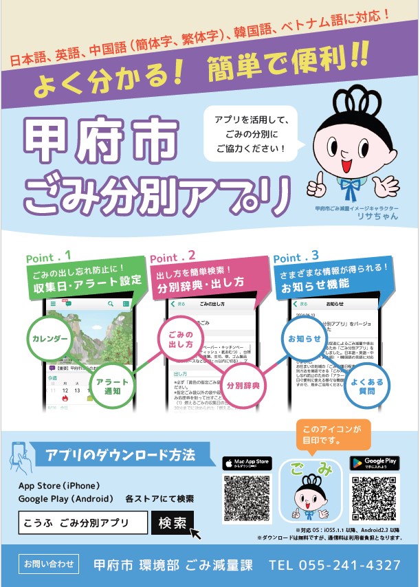 甲府市からのごみに関する最新のお知らせが確認できます。ご活用ください。