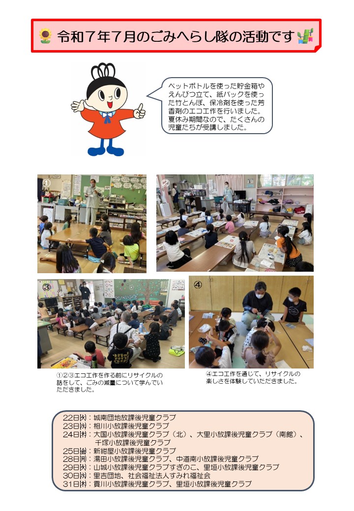 ごみへらし隊にぜひ来てもらいたいという方は、ごみ減量課へお問い合わせください。