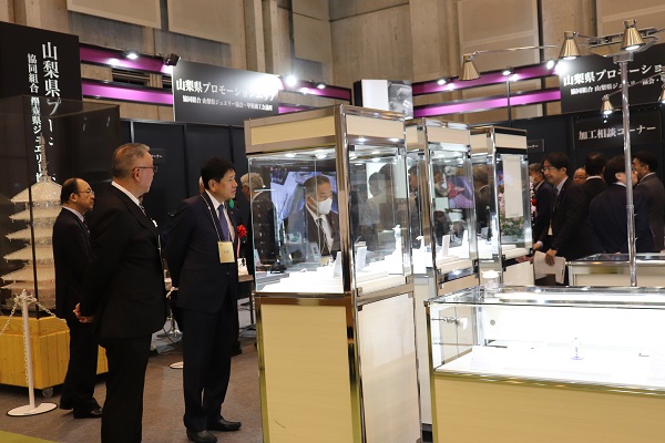 会場では、山梨県プロモーションエリアをはじめ、本市宝飾事業者が数多く出展され、大変賑わいを見せていました。