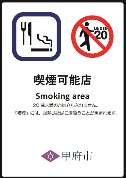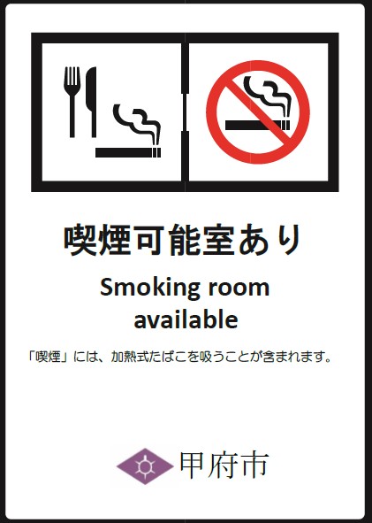 また、禁煙の標識の掲示については努力義務とされていますが、甲府市では、市民の皆様に安心して施設をご利用いただけるよう、標識の掲示をお願いしています。