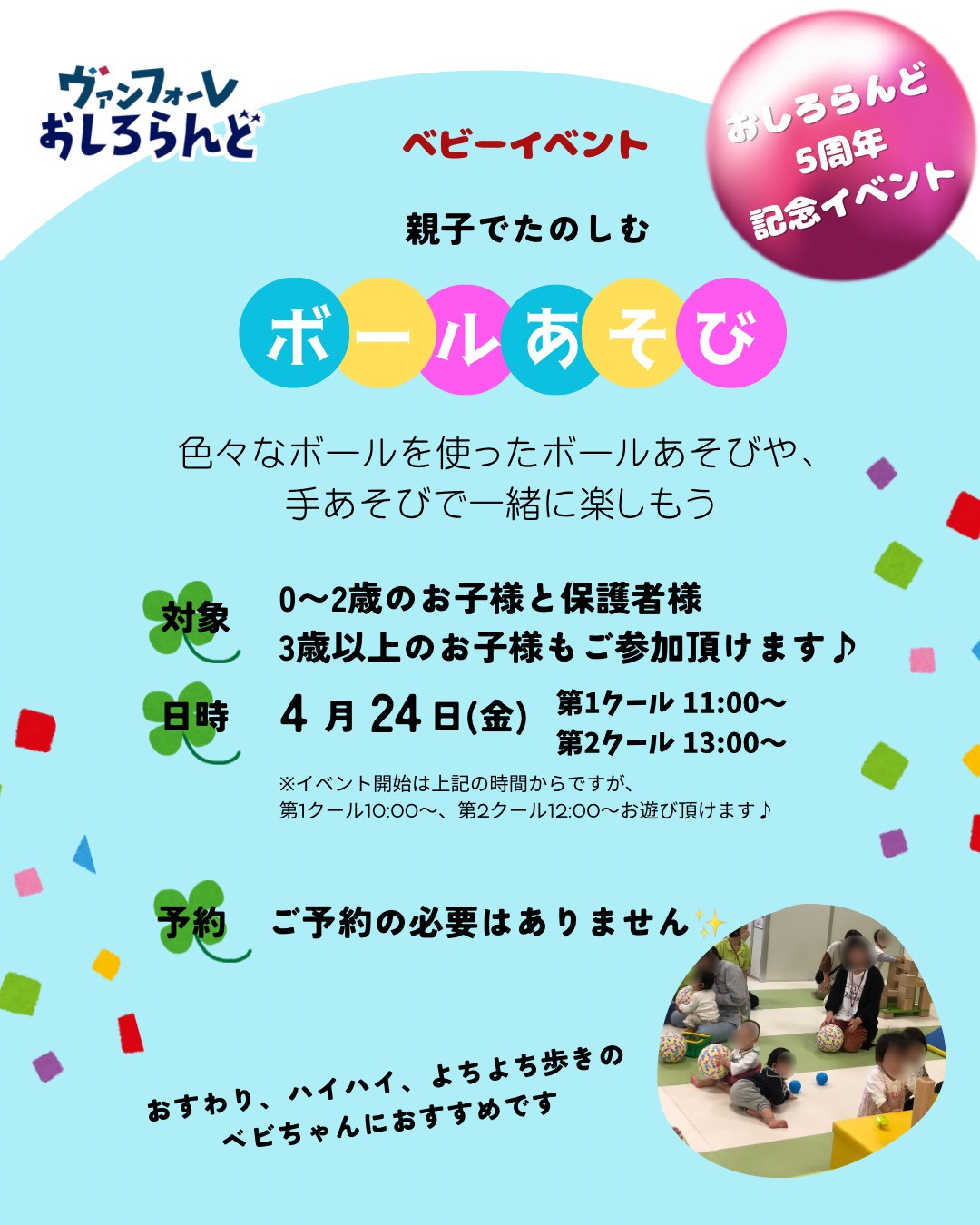 おしろらんど5周年を記念して親子で楽しくお歌に合わせてボール遊び! |
