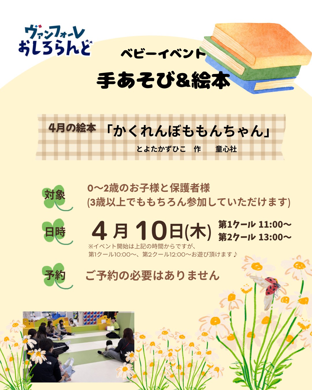 絵本にちなんだ手遊びをして絵本の読み聞かせを行います。 |