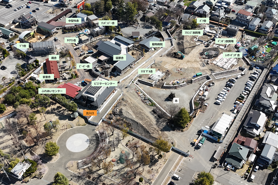 動物園を定期的にドローンにて定点撮影し、工事の進捗を記録しています。