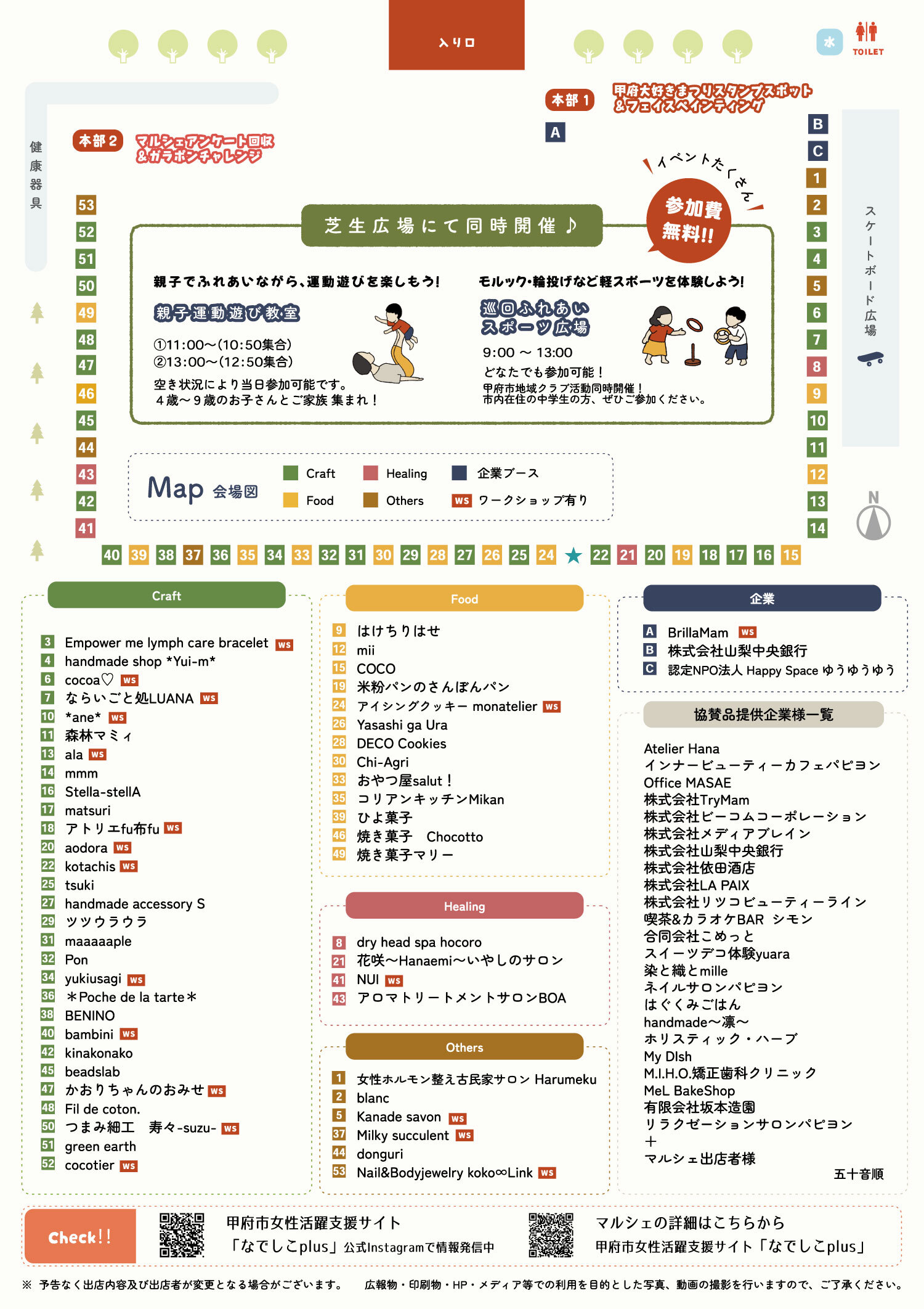 ホーム > 仕事 > 女性の起業等支援『Can-Passスタイル』〜女性の活躍と交流機会の創出〜 > こうふ女性達で創るマルシェ事業紹介 > 2025年度「こうふ女性達で創るマルシェ」