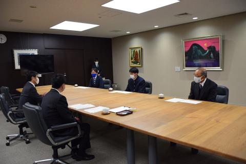12月17日全国高校サッカー選手権大会出場報告のため、横森総監督と長谷川監督、谷口キャプテンが樋口市長と數野教育長を表敬訪問されました。