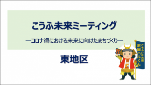 令和4年度に開催したこうふ未来ミーティング「コロナ禍における未来に向けたまちづくり」において配布した、各地区ごとの資料と当日の動画です。