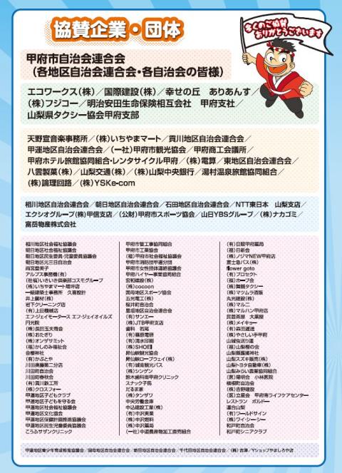 市民の皆さまにより一層楽しんでいただける「甲府大好きまつり」とするために、協賛を募らせていただきます。多くの皆さまに甲府大好きまつりの趣旨をご理解をいただき、ぜひご協力をいただけますよう何とぞよろしくお願いいたします。