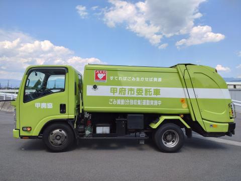 〇可燃物・ミックスペーパー・プラスチック包装容器収集車両・・・薄い黄緑色 (甲府市廃棄物協業組合)