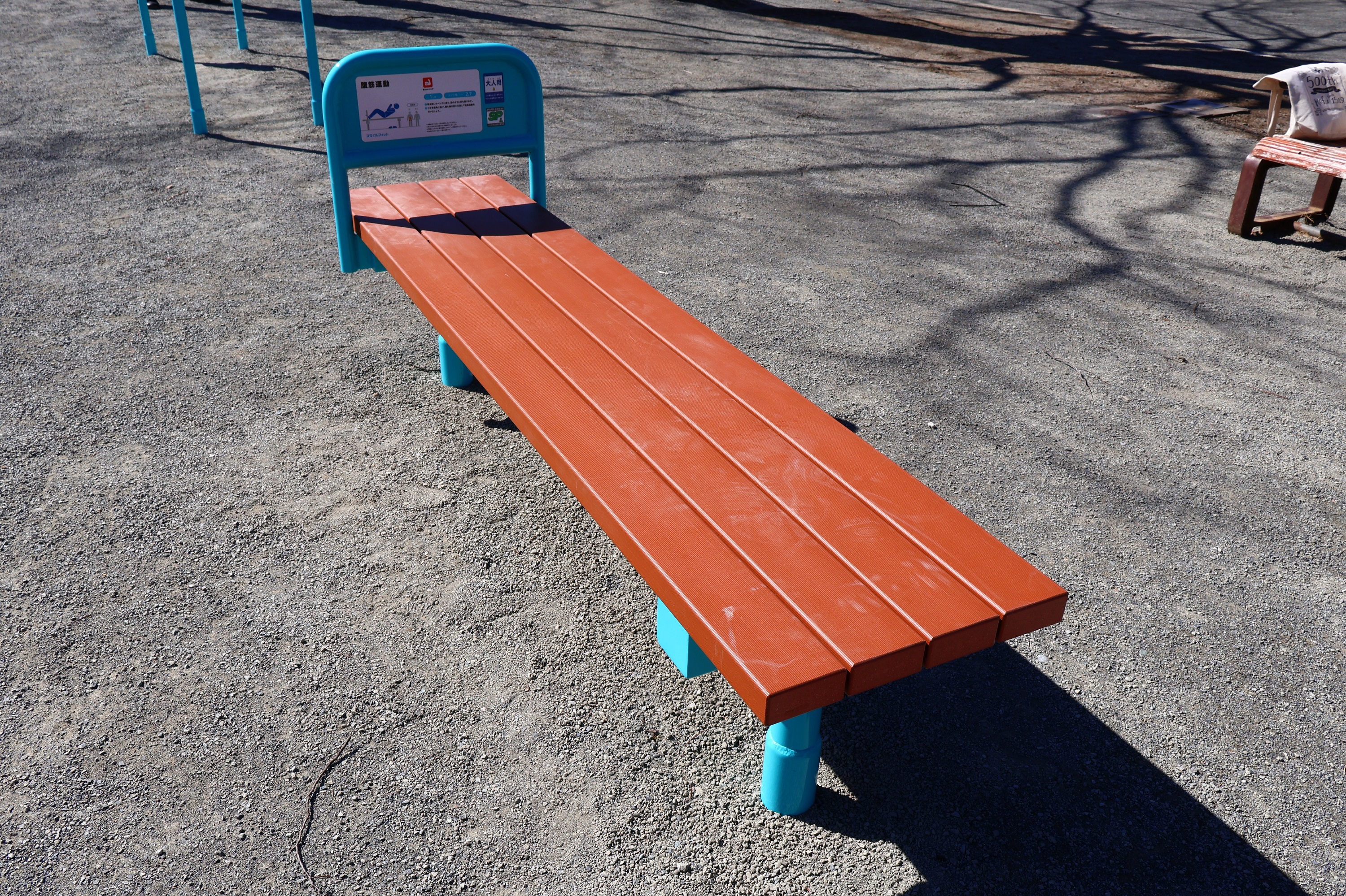 (3)腹筋台 効果:筋力強化、筋力づくり 利用方法:ベンチの上で腹筋運動を行います。 |