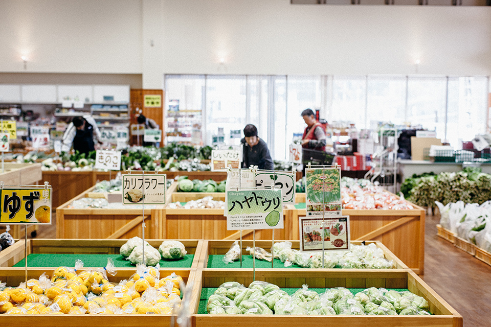 甲府市南部に位置する中道地区は、豊かな日照量と盆地特有の昼夜の気温差、そして生産者の技術で生み出された高品質の農産物で知られるエリア。有名なブランドとうもろこし“きみひめ”は、この中道の特産品です。そんな中道地区でその日の朝採れたばかりの新鮮な野菜や果物を販売しているのがこちら。しかも生産者から直送なので、びっくりするくらいのお手頃価格が続出。併設のレストラン「ファームキッチン味彩」のメニューも、あなどれない本格ラインナップなので、ぜひ立ち寄りを。2014年に近くから移転新築した建物は木をふんだんに使っていて、ゆったり気持のいい造り。
