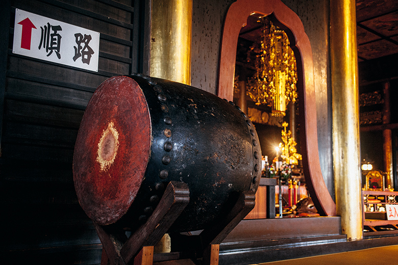 長野善光寺とともに有名な甲斐善光寺。信玄公が川中島の合戦の際、信濃善光寺からご本尊を甲斐国に避難させたことが始まりという、重厚荘厳なお寺です。こちらの特徴は、“体験型”だということ。真っ暗闇の小部屋を壁づたいに巡る戒壇めぐりや、本堂天井の鳴き龍体験、川中島の合戦の時代から伝わる陣太鼓などなど、ぐっと歴史が身近に感じられるようになる、まさに大人の修学旅行体験ができるスポットです。